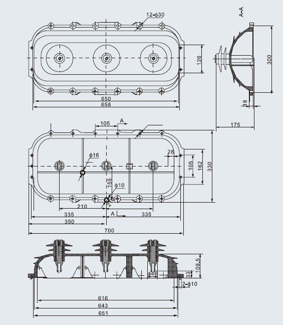 產(chǎn)品編號:HCA807 名稱:SF6上殼體 外形尺寸:700×330×175